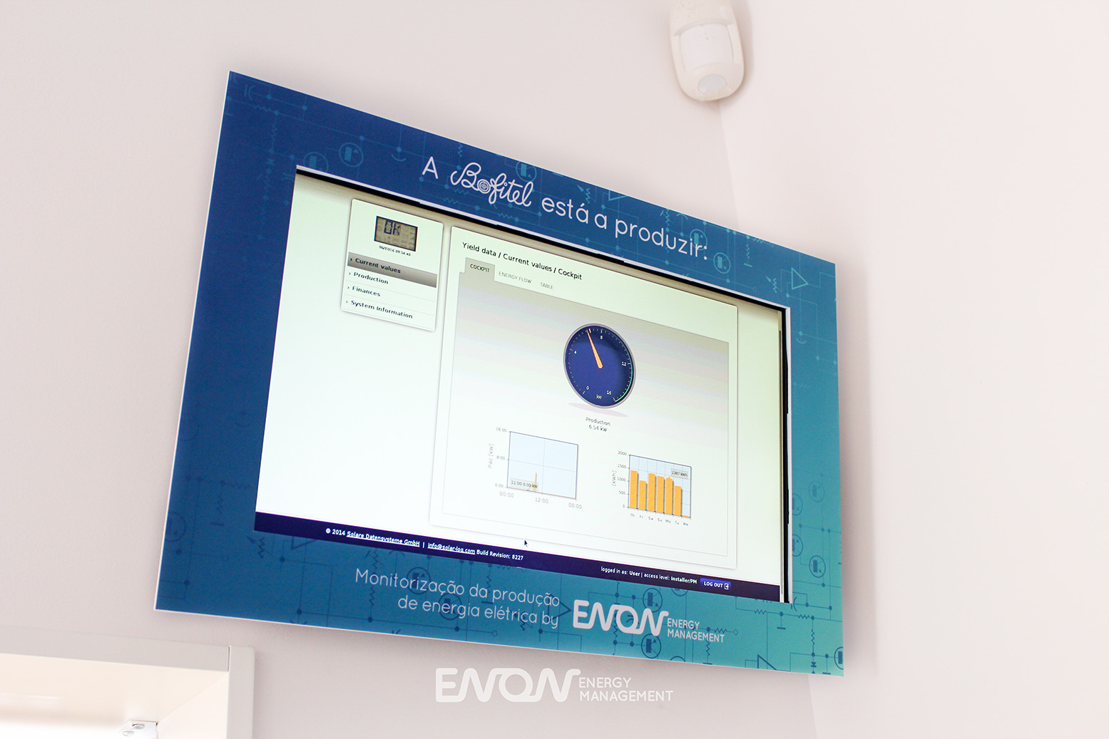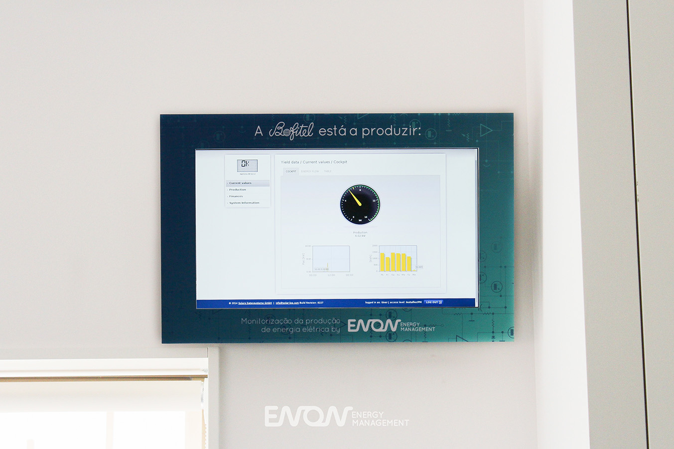 Redução dos custos com a eletricidade e produção de energia limpa. Com o painel de monotorização de energia, instalado ao lado do quadro elétrico, a Bofitel tem acesso em tempo real à quantidade de energia que a instalação fotovoltaica produz.